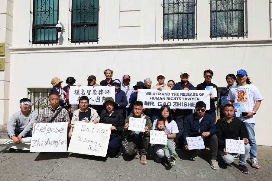 Activistas chinos se manifiestan frente al Consulado de China en San Francisco con motivo del 61.º cumpleaños del desaparecido abogado de derechos humanos Gao Zhisheng. Crystal Lu/The Epoch Times