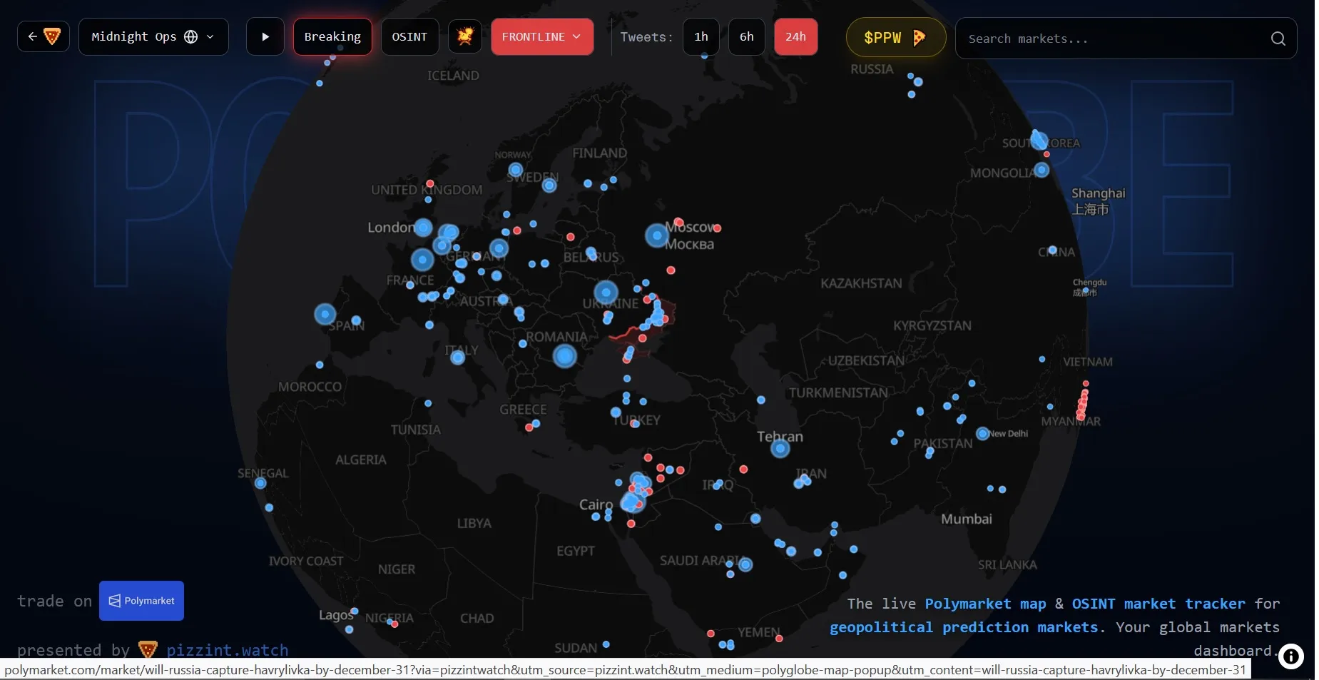 Aplicaciones como Polyglobe y el Índice de Pizza del Pentágono cumplen precisamente este propósito. Estos portales, que colaboran con Polymarket, utilizan datos de inteligencia de fuentes abiertas (OSINT): información disponible públicamente procedente de imágenes satelitales, redes sociales, vídeos, informes de noticias o bases de datos abiertas, que se recopila, organiza y evalúa, incluso para el seguimiento de acontecimientos bélicos.