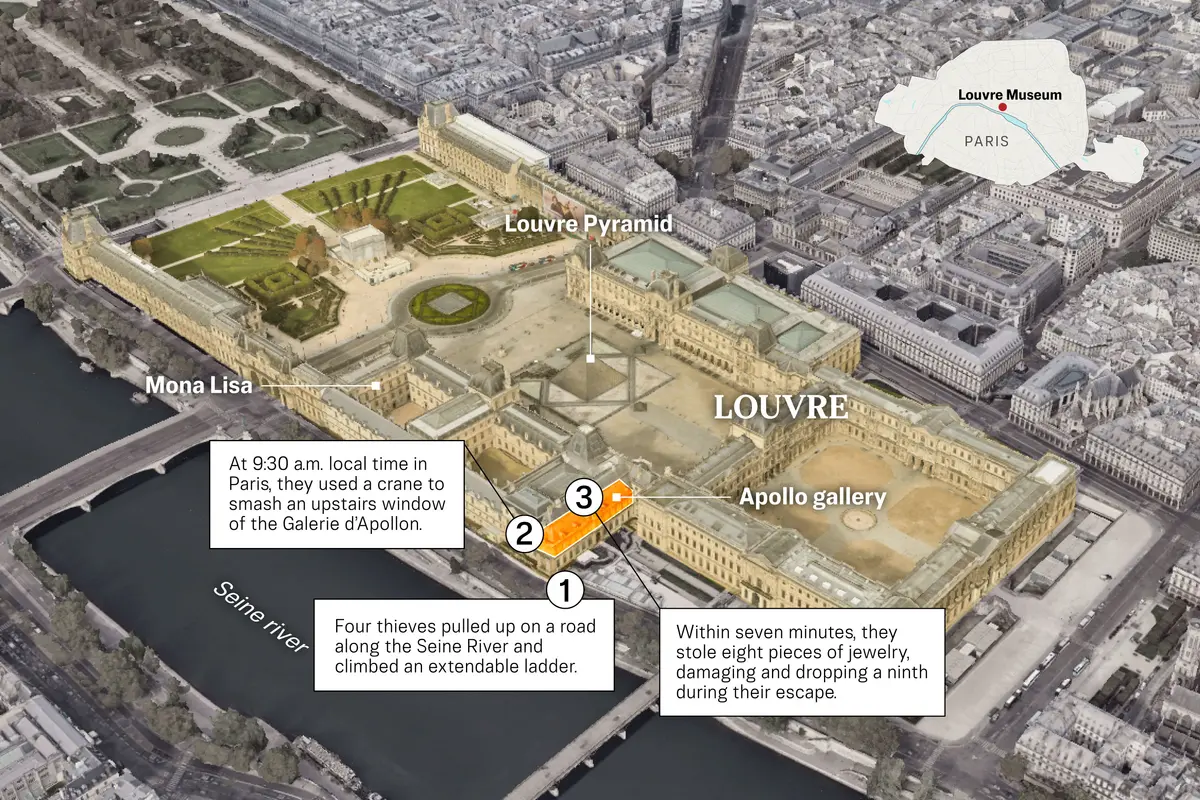 Tras el robo a plena luz del día, han surgido preguntas sobre la seguridad del museo más visitado del mundo, que atrae a cerca de nueve millones de visitantes al año, junto con especulaciones sobre quién podría estar detrás del crimen.