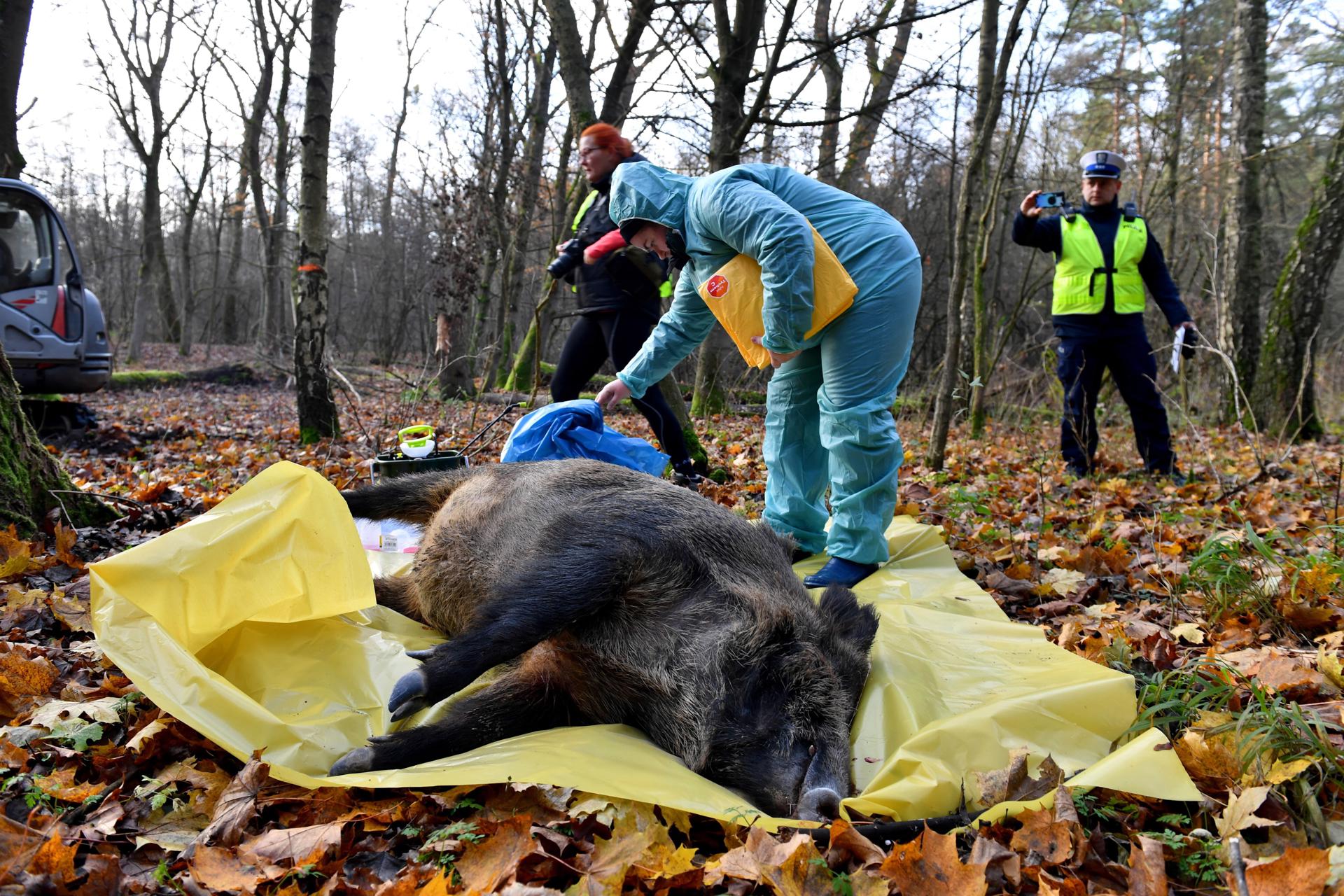 Imagen de archivo de un veterinario observando un jabalí muerto por peste porcina. Foto: EFE/EPA/MARCIN BIELECKI