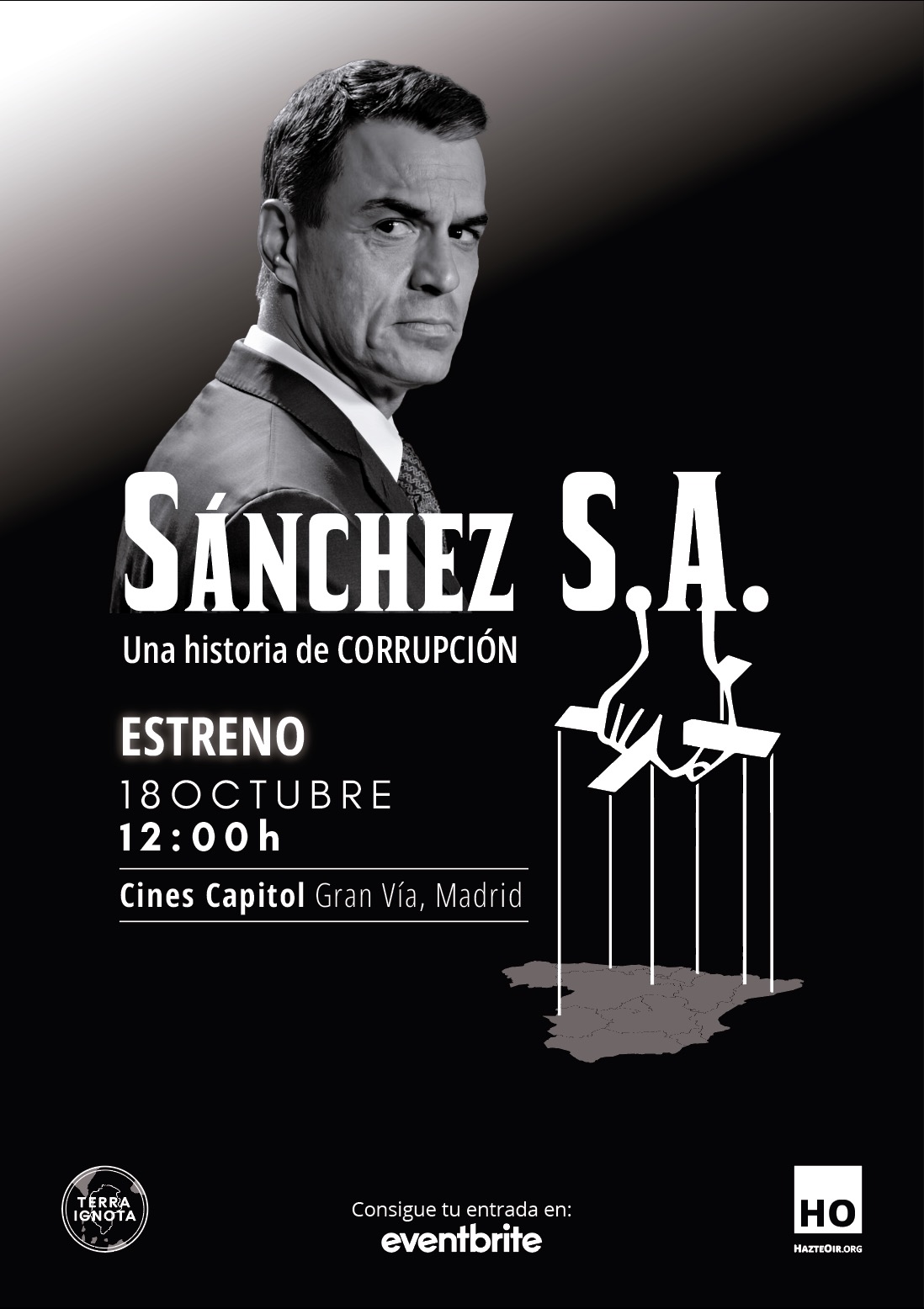 El 18 de octubre, la organización cívica Hazte Oír, en colaboración con la productora Terra Ignota, estrenará en el cine Capitol Gran Vía de Madrid, a las 12:00 horas, el documental Sánchez S.A.: Una historia de corrupción. Este proyecto ha captado un notable interés con más de 800 entradas reservadas.